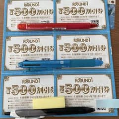 ラウンドワン 株主優待券 500円割引券3枚+入会券1枚+レッスン優待券1枚