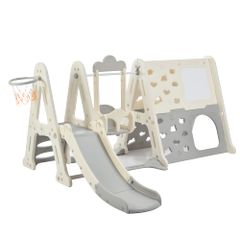 新品 OSJ 滑り台 大型遊具 ジャングルジム ブランコ ゴール遊び 吊り輪 室内遊具 すべりだい 屋内 家庭用 子供 キッズ 男の子 女の子 誕生日 プレゼント こどもの日プレゼント グレー×ホワイト