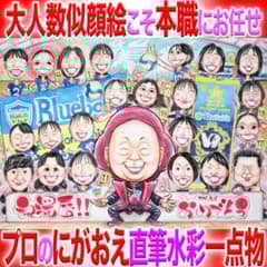 大人数こそプロの似顔絵力!還暦祝いに ちゃんちゃんこも 記念品 お祝いプレゼント