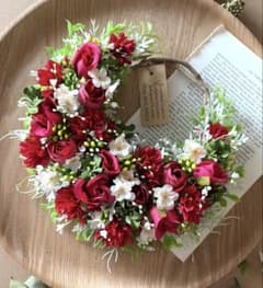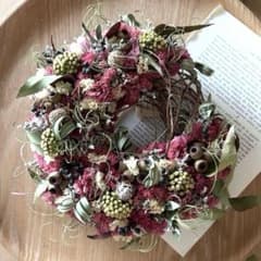 ラナンキュラスとスターチスの華やかなリース ドライフラワーリース 母の日