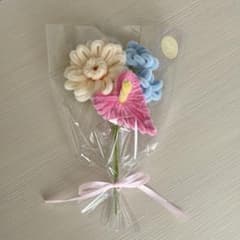 毛糸の花束 パープル ホワイト あみぐるみ *