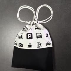 F757巾着袋 ハンドメイド ピクトグラム 白