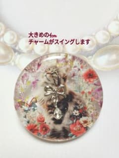 お花畑の猫デザイン ヘアゴム 4cm No−3