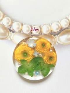 ラナンキュラスゴールド ドライフラワー 六角形 ヘアゴム 3.7cm