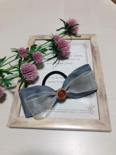 deko様 No.229 ヘアゴム チャーム キーホルダー リボン グレージュ