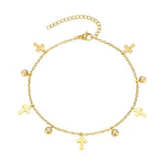 【新品】 アンクレット レディース ステンレス アンクレット チェーン ゴールド キュービックジルコニア 幾何モチーフ サイズ調節可能 金属アレルギー対応 足首用 夏 クリスマス (太十字架) 0