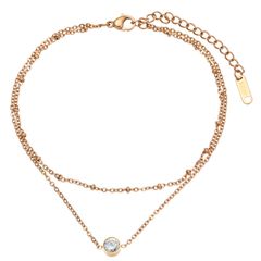 アンクレット 一粒 2連 ダイヤモンド K18 PVD World ピンクゴールド レディース ステンレス Target ジュエリー アレルギー対応 AN079CZ