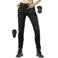 新品 [RENHE] バイクパンツ レディース ライディングパンツ プロテクター バイクズボン耐磨耗 ライダースパンツ スリム 春夏秋向け 伸縮性 オールシーズン ブラックB Mサイズ