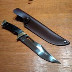 ハンティングナイフ リカーブブレード 黒檀ウッドハンドル フルタング 刃厚4㎜
