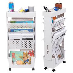 キッチン オフィス 収納ラック 子供ブックスタンド マガジンラック 本/CD収納 引き出し 可動式 大容量 キャスター付き 省スペース 5段 軽量 デスクワゴン 隙間収納 組み立て簡単 本棚 ホワイト ALIMORDEN