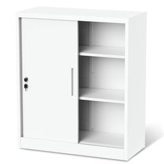 新品 DEWEL スチールロッカー 鍵付き書庫 鍵付きキャビネット スチール製 書庫 保管庫 収納庫 おしゃれ 業務用 法人、個人事業主様向け 3段 A4対応 可動棚 (ホワイト [引き戸]高さ105cm)
