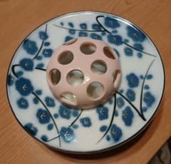 【未使用新品】陶器 灰皿 ピンク 梅 直径約18センチ 昭和レトロ アンティーク
