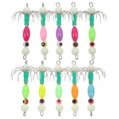 新品 KOMBIUDA 10個セット イカフック 釣りルアーフック 夜光ビーズ付き 交換可能 釣り針 釣り道具 海釣り用 2.28×1.26×1.26インチ
