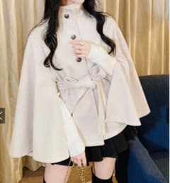 GRL ワンホンリボンベルト付きのスタンドカラーケープコート
