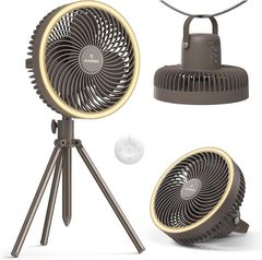ALROMUS 互換品キャンプ扇風機 8000mAh DCモーター USB充電式コードレス アウトドア扇風機 120°首振り・風量4段階・リズム自然風・タイマー機能付き(ブラウン)