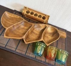 グアムお土産 アジアンエスニック木製トレー ガラスグラスワンプレート キートレー