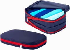 圧縮トラベルポーチ 旅行用 ネイビー S 軽量 大容量 衣類収納 出張 便利
