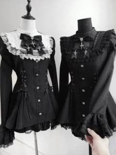新品 ブラック セットアップ 長袖 ゴシッククロス リボン付き 量産型地雷系