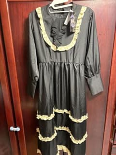 新品 イクシーズ レディース 長袖 ロングワンピース ブラック M-L