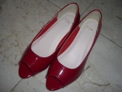 ★Fin★フィン★エナメルオープントゥパンプス赤★サンダル★