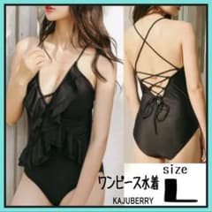 Re:EDIT ワンピース 水着 フリル付き レディース水着 ブラック L