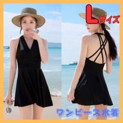水着 ワンピース 体型カバー バッククロス リゾート プール レディース 黒 L