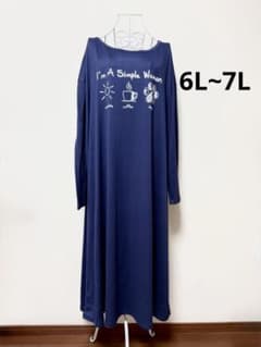 【新品】長袖 ルームウェア ワンピース ナイトウェア ネイビー 5XL 6L7L