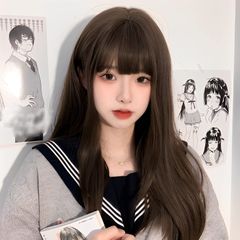 【数量限定】【大人気】フルウィッグ 自然 かつら コスプレ ぱっつん前髪 ストレート 小顔 人気 ロング 耐熱 原宿系 ウィッグ ファッション ロリータ HAIRCUBE ネット(ダークブラウン)