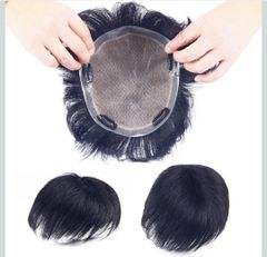 ★メンズ 人毛100% つむじ周辺カバー 部分ウィッグ 人工皮膚 通気有 黒 ★