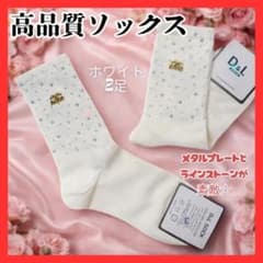 ソックス おしゃれ白2足 キラキラ ストーン ブランド感 高品質 プレゼントに