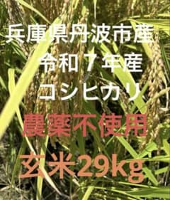 兵庫県丹波市産! 令和7年産 農薬不使用 コシヒカリ玄米29kg