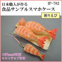 日本職人が作る 食品サンプル iPhone7ケース/アイフォンケース お寿司 握りえび ストラップ付き IP-702