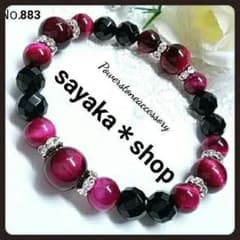 №883 ピンクタイガーアイ×64面カットオニキス パワーストーンブレスレット