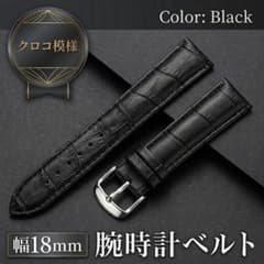 18mm 腕時計ベルト ブラック クロコ フェイクレザー 型押し 男女兼用