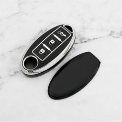 日産Nissan スマートキーケース TPU キーカバー バックドア 3ボタン ブラック×シルバー
