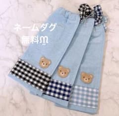 おりこうエプロン タオルスタイ 保育園 チェック 3枚 くま 青