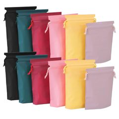 新品 ビニール 収納袋 引きひも袋 12個セット 防塵 防水 巾着袋 折りたたみ 再利用可能 トラベルポーチ 靴 濡れた服 海辺 旅行用 6つの色が2つずつあります
