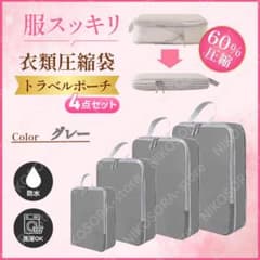 旅行用圧縮袋 4点セット トラベルポーチ 衣類 収納バッグ 撥水 グレー