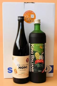 ノニジュース飲み比べ;キングバリアンズと有機ノニまるごと搾り、各1本