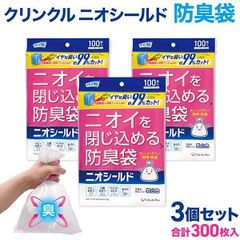ライフ堂 クリンクル 二オシールド ニオイを閉じ込める 防臭袋 乳白色 100枚入×3個セット(300枚) おむつ袋 赤ちゃん ペット 介護 防災 備蓄
