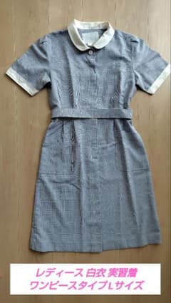 レディース白衣、実習着ワンピースタイプ (白襟、ブルーチェック)