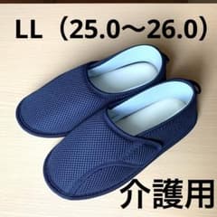 新品 介護用 室内履きシューズ LLサイズ 紺色 メッシュ素材 洗濯可能