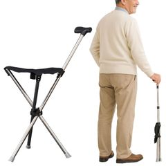 コンパクト 折りたたみ杖 軽量 イス 座れる杖 椅子 三脚 自立式 歩行補助 介護 腰痛 ステッキチェア 休憩 旅行 チェアー アウトドア 釣り ステッキ 運動会 敬老の日 正規品 お年寄り プレゼント