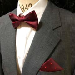 蝶ネクタイ ポケットチーフ2点セット/小花ワインレッド T