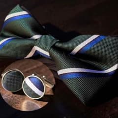 ボウタイ 蝶ネクタイ グリーンストライプ メンズ 結婚式 チーフ カフス j81