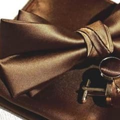 ○蝶ネクタイ(チーフ&カフス付き) ブラウン 茶色 茶 結婚式 Ige