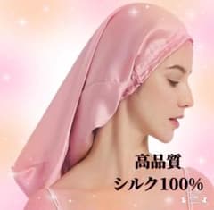 【ピンク】 シルク100%ナイトキャップ ロング ヘアケア シルクキャップ aj