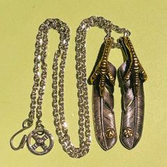 ダブル金爪(左向)&金爪(右向)フェザーネックレス【イーグルフック&ホイール付】(燻加工)