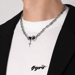 【大人気】シルバー チェーン ネックレス 十字架 クロス ブラック ストリート