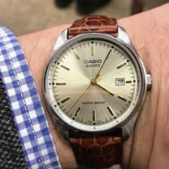 カシオ アナログ腕時計 レザーベルト(幅18mm)未使用品 シャンパンゴールド
